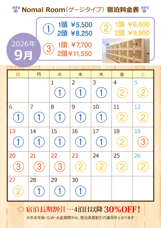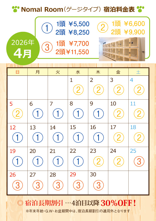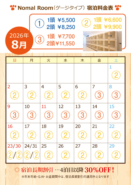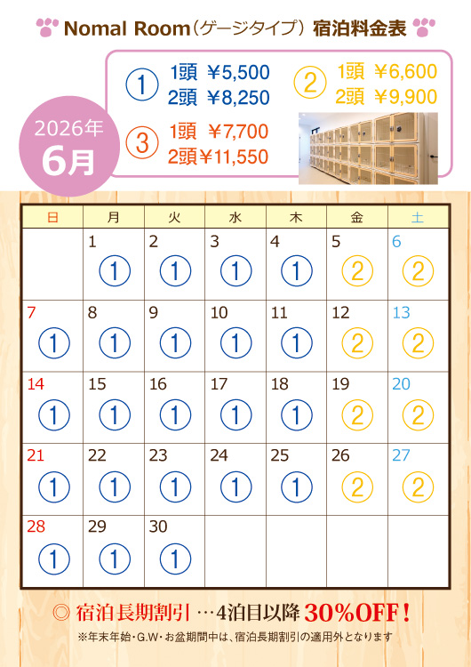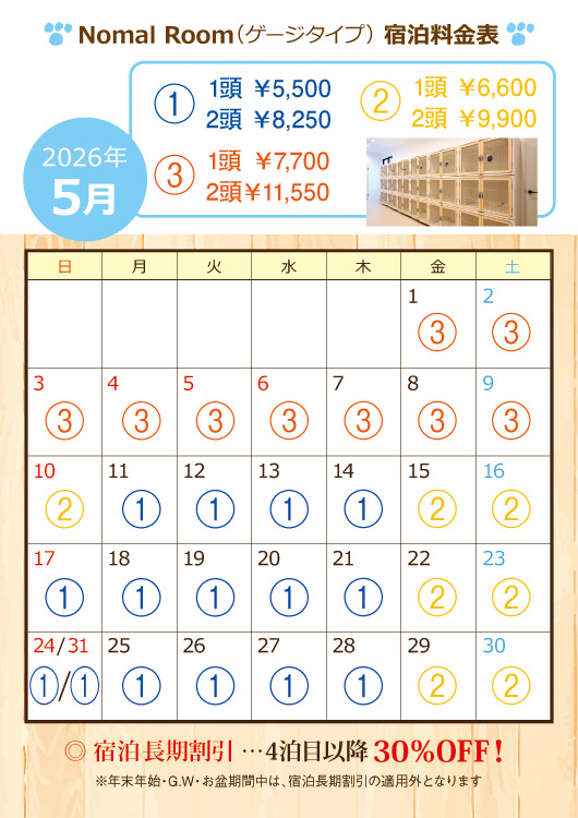 ※年末年始、G.W、お盆期間中は長期割引は対象外となります。